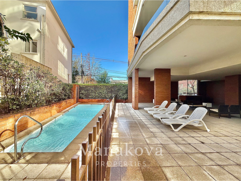 Departamento amoblado en excelente barrio residencial, a sólo 3 minutos caminando de metro Cristobal Colón, cercano a av. Pocuro, Colegio San Ignacio, Plaza Las Lilas, cafés, Club Providencia.