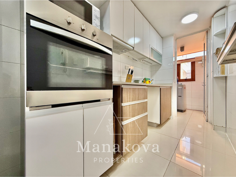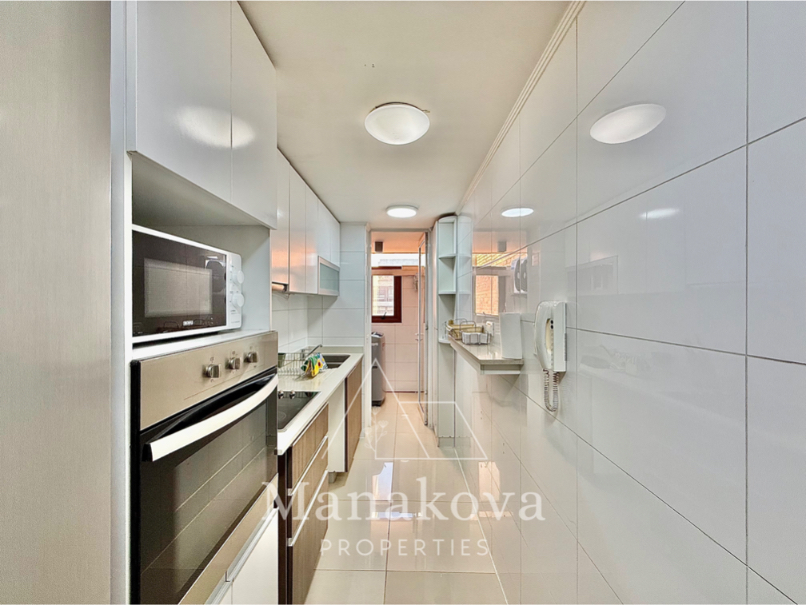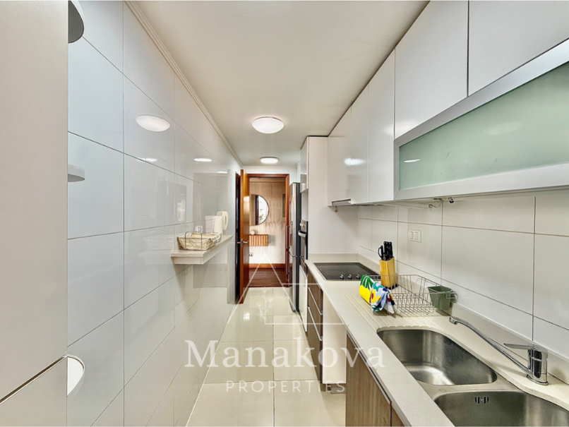 • Cocina equipada con horno eléctrico, encimera, campana, refrigerador, lavavajillas y todos los implementos de cocina como ollas y menaje