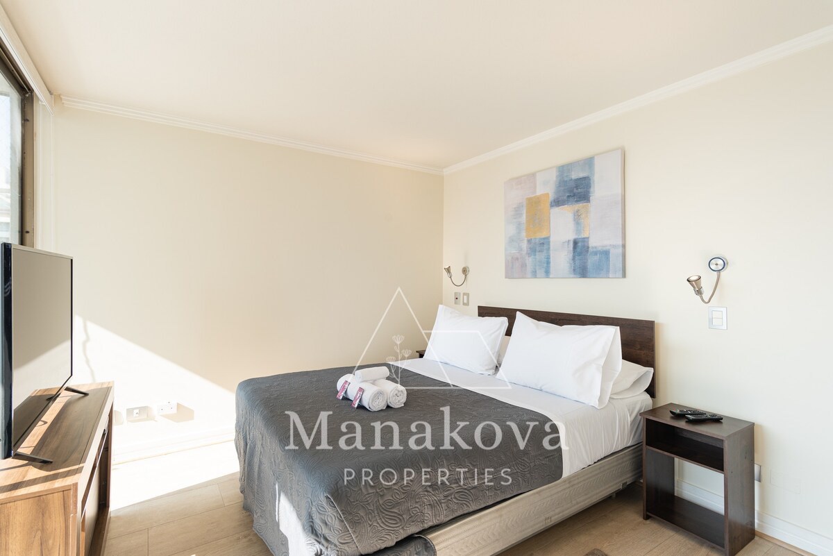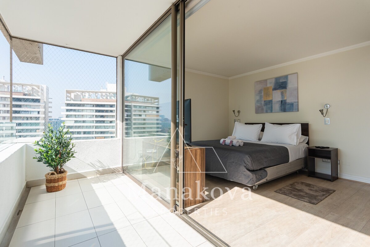 Amplio y luminoso departamento con terraza por todo el departamento, en excelente ubicación del Parque Araucano, pasos de Metro – Manquehue, Mall Parque Arauco, comercios, cafecitos y colegios, restaurantes…