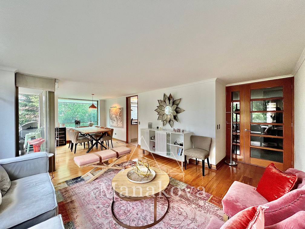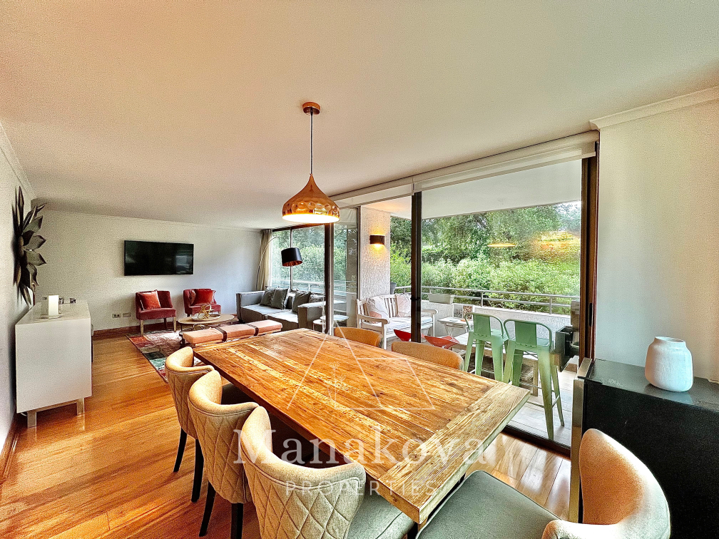 - Sala de estar y comedor integrados con acceso a una amplia terraza, con vista despejada al mall y Parque Araucano.
