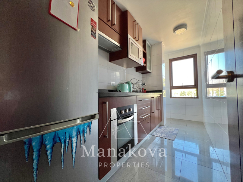 Nuevo y moderno departamento con cocina full equipada con horno eléctrico, encimera, microondas, mesa grande y loggia con conexión para lavadora…