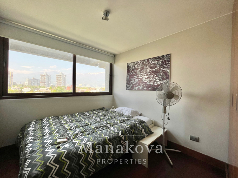 Moderno casi nuevo departamento en el 6. piso con orientación Oriente. Vista DESPEJADA y asegurada por el plan regulador del Barrio Las Flores. Excelente ubicación de la plaza Río de Janeiro, Pocuro, pasos de Metro – Cristóbal Colón, comercios, supermercados y colegios.