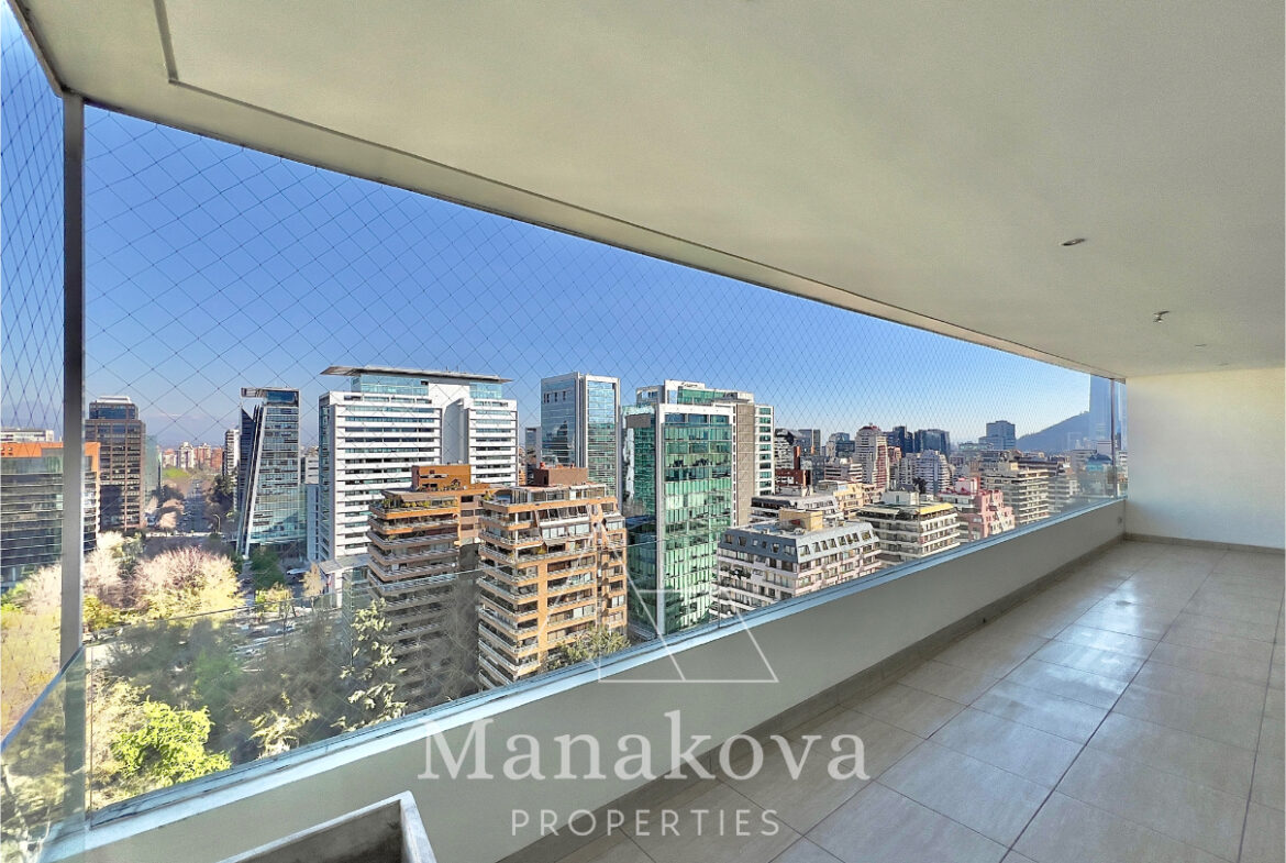 Muy amplio y luminoso departamento, en excelente ubicación Vista al Club de Golf Los Leones y Cerro San Luis, pasos de Metro El Golf, oficinas, comercios, supermercados y colegios. Se aceptan mascotas. Dos terrazas de 40m2 en total.