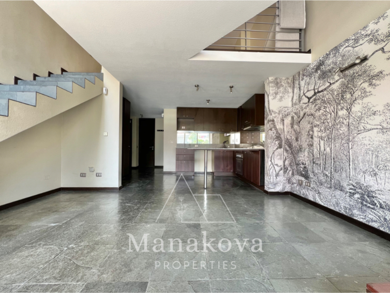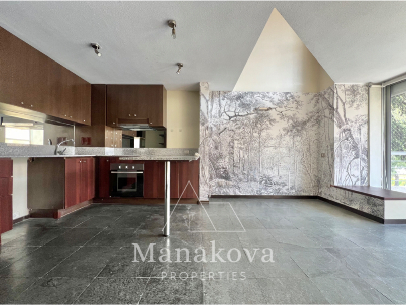 Nuevo y moderno LOFT con cocina americana equipada con horno eléctrico nuevo, encimera vitroceramia nueva, mesa grande. Hay conexión para lavadora o lavavajillas en la cocina. Incluye iluminación completa y cortinas rollers.