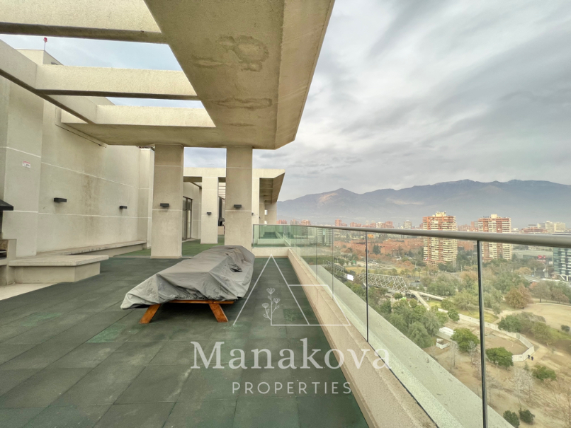 Amplio y luminoso departamento con terraza por todo el departamento, en excelente ubicación del Parque Araucano, pasos de Metro – Manquehue, Mall Parque Arauco, comercios, cafecitos y colegios, restaurantes…
