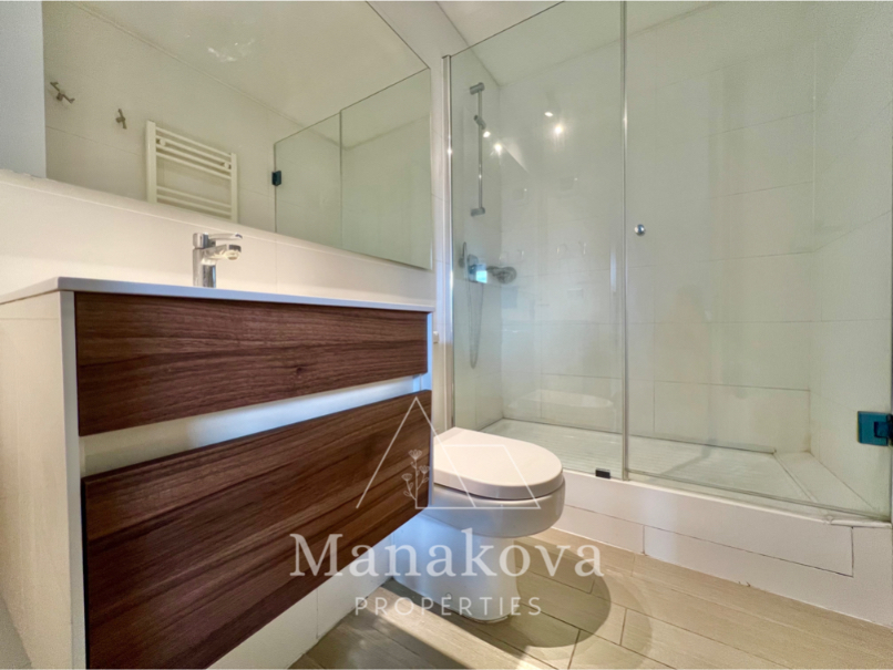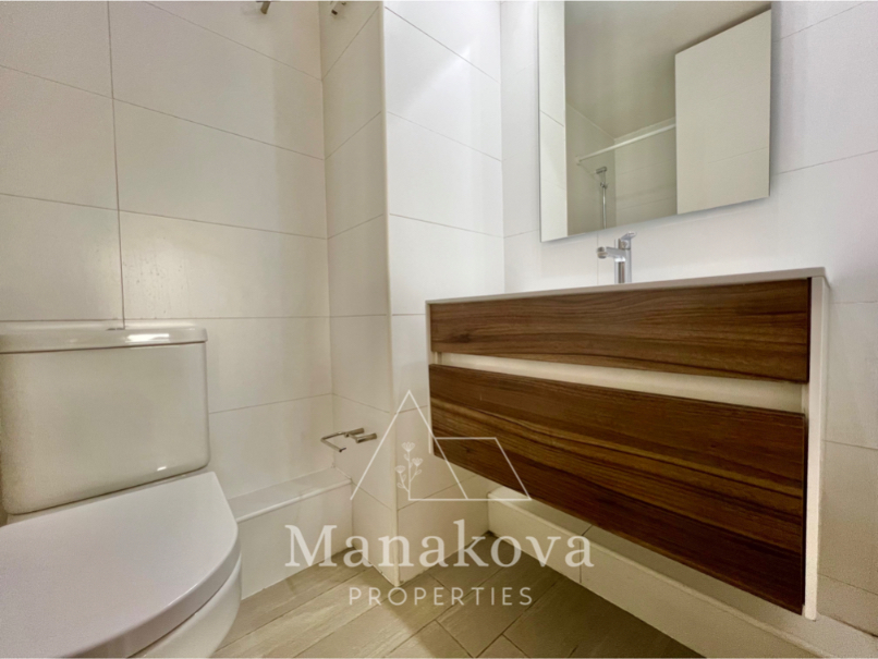 Dormitorio principal en suite con salida a la terraza, closet y baño completo con ducha. El segundo cuarto tiene un ancho de 150cm y cuenta con closet. Puede servir como una oficina/cama individual con velador. Baño de visita con tina. Ventanas con termopanel y cortinas rollers. Piso porcelanato imitación madera.
