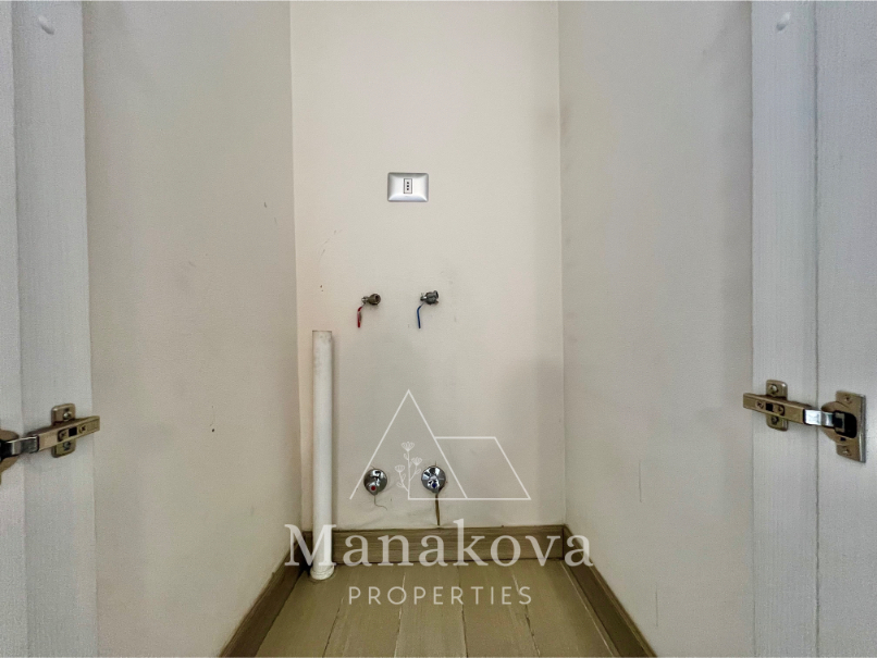 Cocina americana equipada con microondas y horno eléctrico, incluye mesa de trabajo/comedor de diario. Cuenta con una loggia de forma de un closet que tiene conexión para lavadora y secadora.