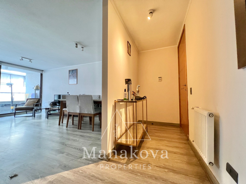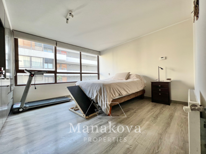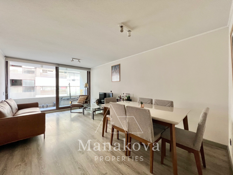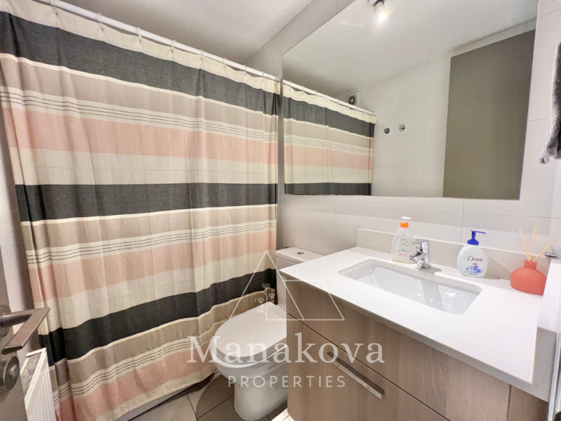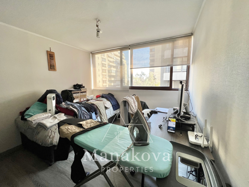 Moderno departamento en excelente ubicación de la plaza Rio de Janeiro, Pocuro, pasos de Metro – Cristobal Colon, comercios, supermercados y colegios. 2 dormitorios con amplios closets y 2 baños con luz natural. Cocina full equipada con horno, campana, encimera, comedor de diario, conexión para lavavajillas y lavadora, además modernas terminaciones. Ventanas termopanel, incluye cortinas rollers.