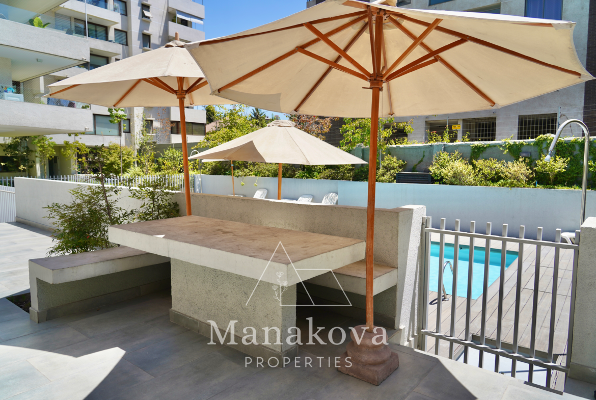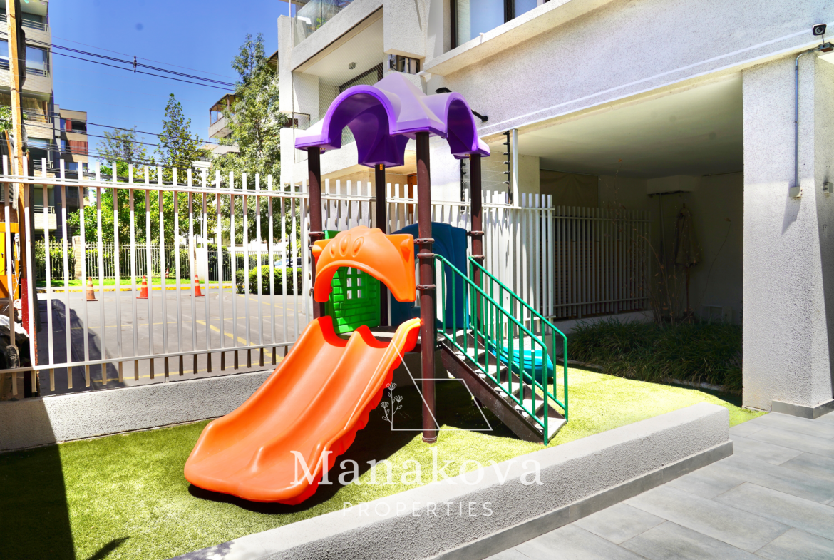 Amplio y luminoso departamento en el 2º piso, NORTE, en excelente ubicación a pasos de la plaza Las Lilas y metro – Cristobal Colon, comercios, supermercados y colegios. Barrio seguro y muy tranquilo.
