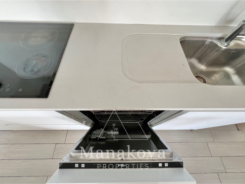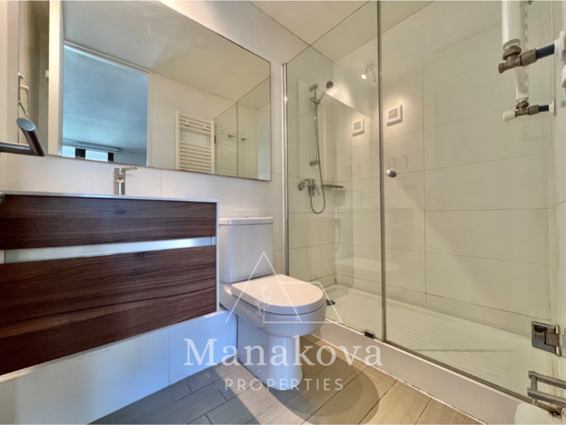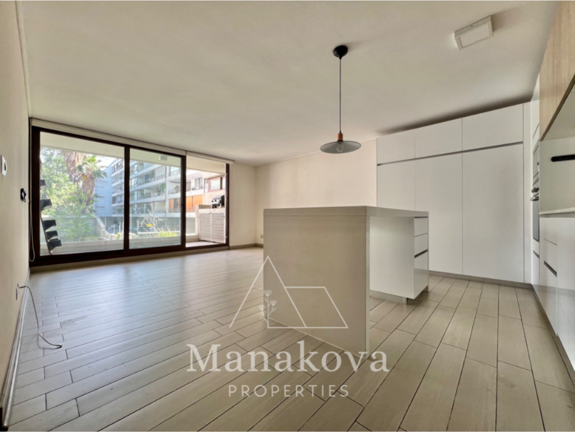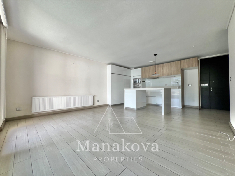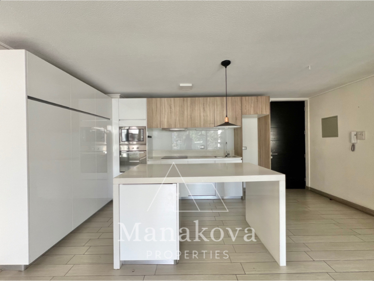 Nuevo y moderno departamento con cocina americana full equipada con lavavajillas, horno eléctrico, encimera, microondas, mesa grande y loggia con conexión para lavadora en la terraza. Incluye iluminación y cortinas rolares.